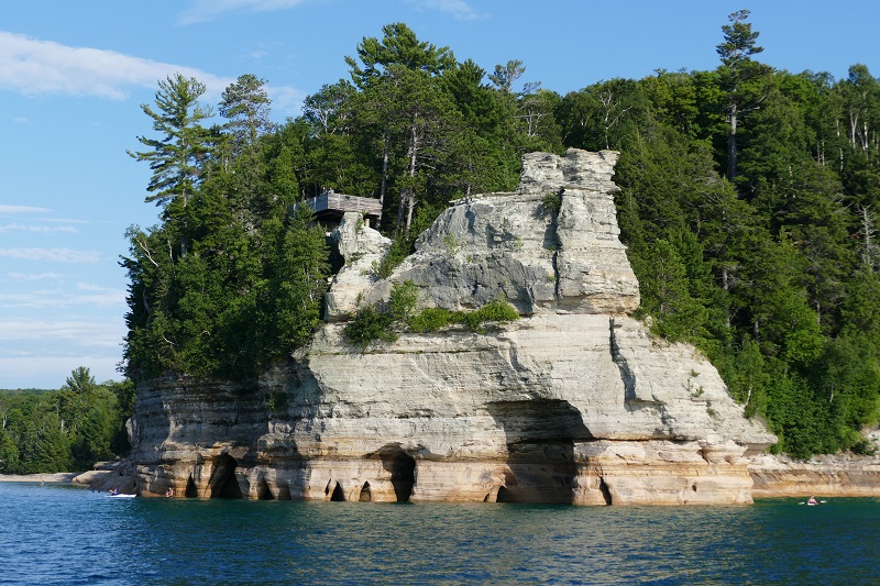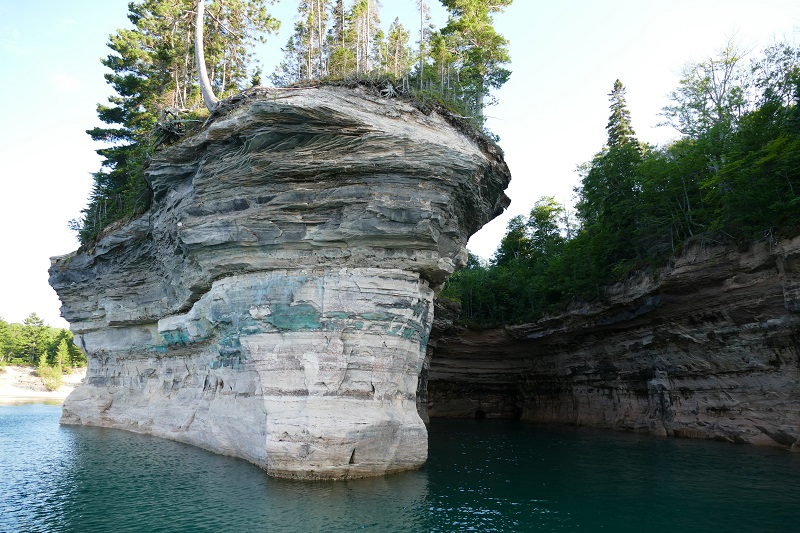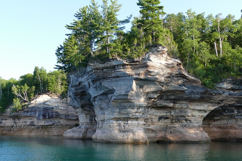 Pünktlich um 18 Uhr legte das Boot ab und nach wenigen Meilen auf dem Lake Superior tauchte rechter Hand die schöne Felsküste auf. Im Abendlicht ist die Tour aufgrund der untergehenden Sonne am Schönsten.
