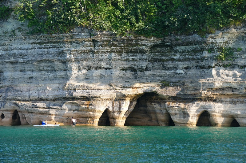 Der Fluss war sehr kurvenreich mit einigen kleineren Stromschnellen, aber gut machbar für Anfänger. Schwer beeindruckt kamen wir am Ziel der Tour an und picknickten nach getaner Arbeit. Dann fuhren wir weiter bis Munising, wo wir in unserer neuen, bereits vorgebuchten Unterkunft eincheckten. Schon bei der Reiseplanung vermutete ich, dass dieser Tag von besonderen Erlebnissen geprägt werden könnte, und deshalb hatte ich im Alger Falls Motel anstatt eines Zimmers ein kleines Cottage gebucht. Das Häuschen war richtig liebevoll eingerichtet, fast zu schade, um nur eine Nacht zu bleiben.