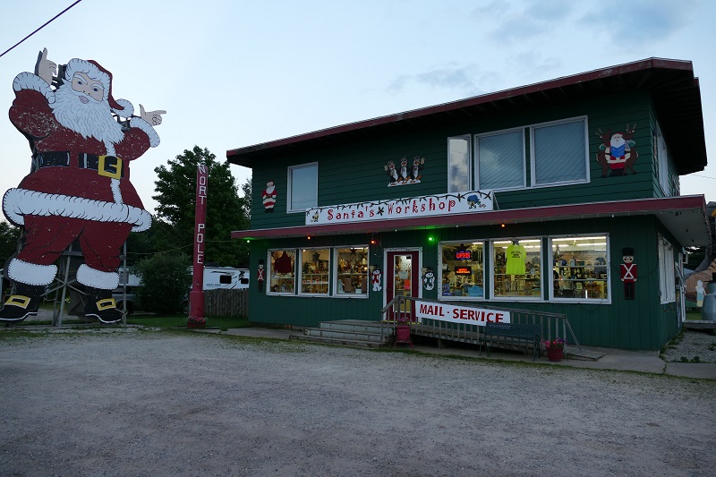 Auf dem Rückweg zogen schwarze Wolken auf. Knapp drei Stunden nach Tourstart landeten wir wieder sicher im Hafen von Munising. Wir sputeten uns und fuhren noch einmal ein paar Minuten bis zum nächsten Ort: Christmas. Hier ist der Ortsname Programm und das ganze Jahr über Weihnachten. Zumindest in Santa's Workshop, der fast am Nordpol liegt. Auch unter Zeitdruck – wir kamen erst zehn Minuten vor Ladenschluss an – fand ich wieder etwas typisch amerikanisch Kitschiges. Chris trug es mit Fassung.