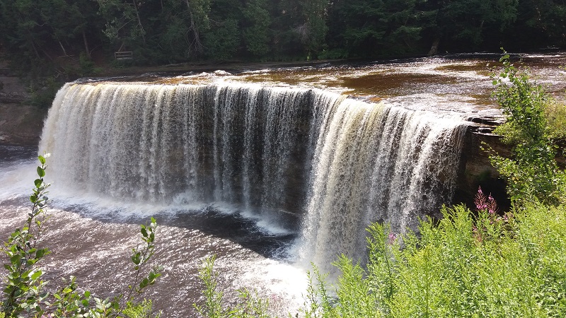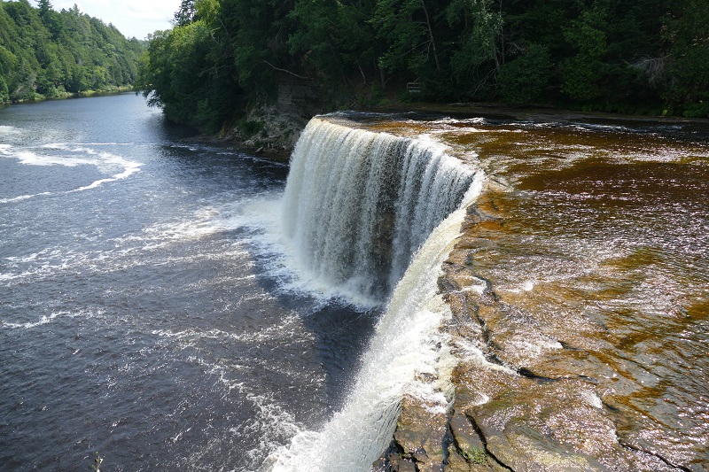 Zum Glück waren Chris und Dominic ebenfalls nicht wirklich angetan, und so fuhren wir nach kurzer Zeit weiter zum Tahquamenon State Park. Hier gibt es zwei Wasserfälle zu bestaunen: Die Upper und die Lower Falls. An den Upper Falls (die den Spitznamen 'Little Niagara' haben) hielten wir uns sehr lange auf. Hier gab es einige sehr schöne Aussichtspunkte, die wir allesamt abliefen. Anschließend stöberten wir durch den großen Souvenir-Shop. Zum Abschluss haben wir ein leckeres Eis gegessen.