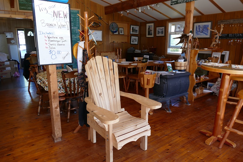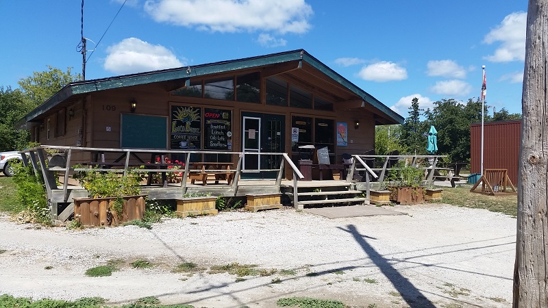 Anschließend fuhren wir nach Manitowaning. Nach dem Besuch des örtlichen Supermarktes suchten wir uns ein Frühstückslokal und fanden auf der anderen Straßenseite das Loco Beanz. Dort gab es um 12.30 Uhr zwar kein Frühstück mehr, aber Chris bekam einen vorzüglichen Kaffee Latte und wir zwei Jungs tranken köstlichen Milch-Shake. Süße Stückchen dazu gibt es immer. Wenn man sich erst mal auf die Gemütlichkeit, Ruhe und Gelassenheit der Leute einlässt, fängt man an zu verstehen, dass diese Einfachheit hier zum Lebensstil gehört. Die winzigen Ortschaften mit teils nur wenigen Häusern, einem einzigen Supermarkt und zwei Restaurants, hatten wir bei der Ankunft noch als Kulturschock empfunden, mittlerweile fingen wir an, Gefallen daran zu finden.