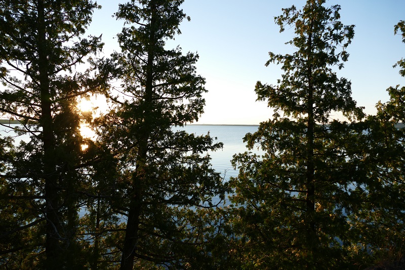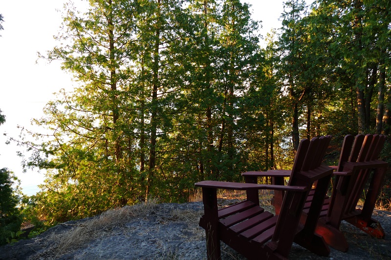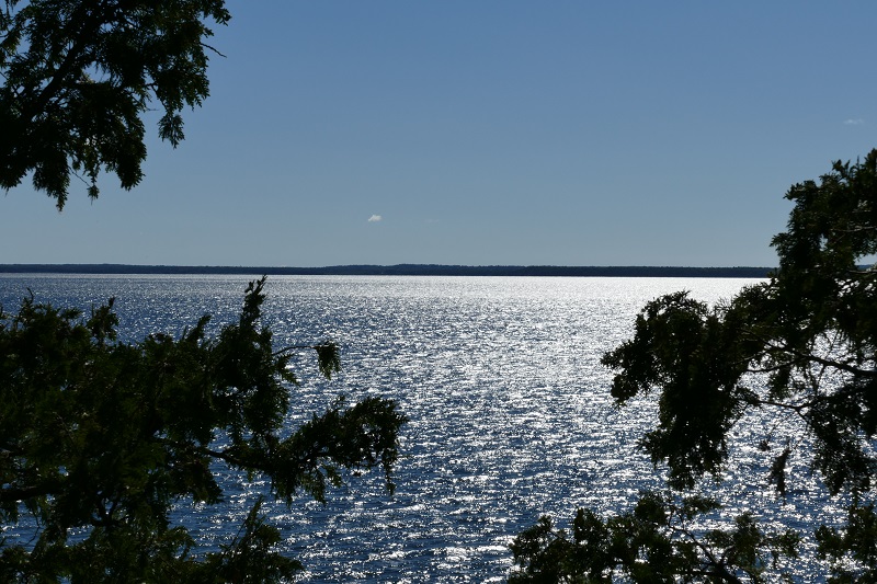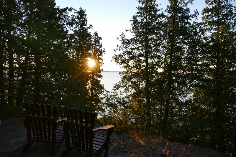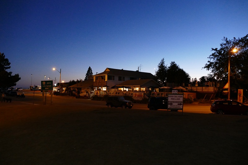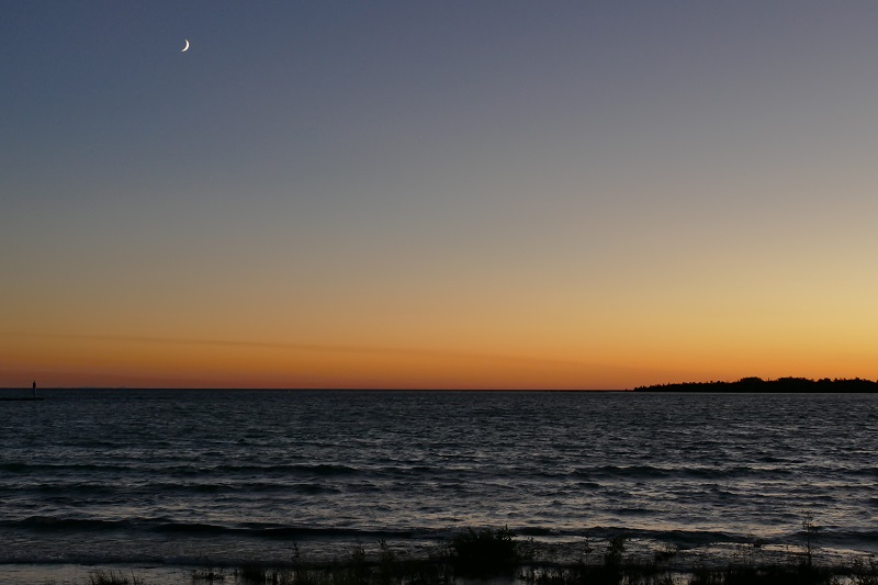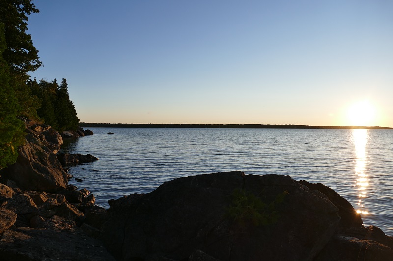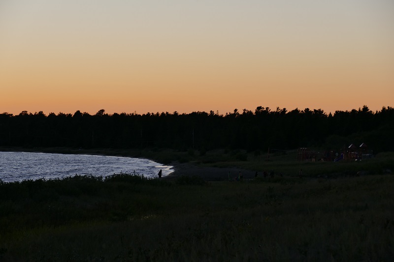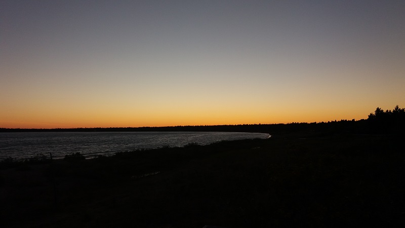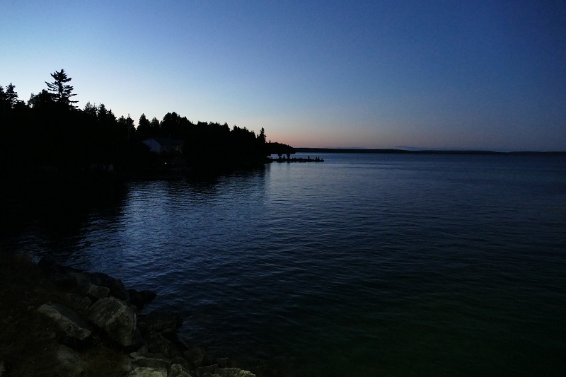 Nachdem wir unsere Sachen abgestellt hatten, fuhren wir direkt zum Abendessen nach South Baymouth an den südöstlichsten Punkt der Insel, wo wir im Pierside Restaurant bei gutem Wetter draußen auf der Terrasse sitzen konnten. Erst nach dem Sonnenuntergang fuhren wir zurück, setzten uns auf die Holzstühle hinter dem Haus und genossen den klaren Sternenhimmel. In der Abgeschiedenheit dieser Gegend sahen wir wahnsinnig viele Sterne und sogar die Milchstraße. Zuhause undenkbar. Ich erinnerte mich an Lone Pine 2009, wo wir das schon mal erlebten. Hin und wieder verglühte eine Sternschnuppe in der Atmosphäre. Erst um Mitternacht gingen wir schlafen.