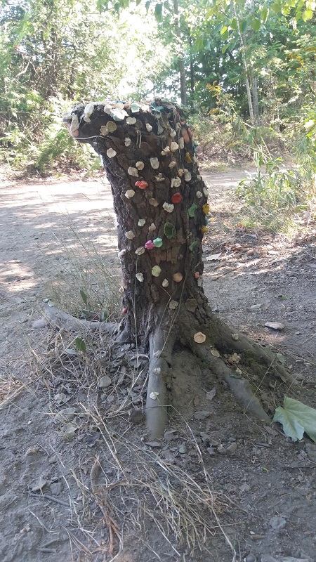 Am Nachmittag brachen wir zu unserer geplanten Wanderung, dem Cup and Saucer Trail, auf. Der Weg führte über teilweise abenteuerliche Steigungen hinauf zum höchsten Aussichtspunkt der Insel (322m). Aus dem Südwesten der USA kannten wir bereits den „Schuh-Baum“ (bei Needles), hier in Kanada gibt es den Kaugummi-Baum. Einfach nur ekelhaft.