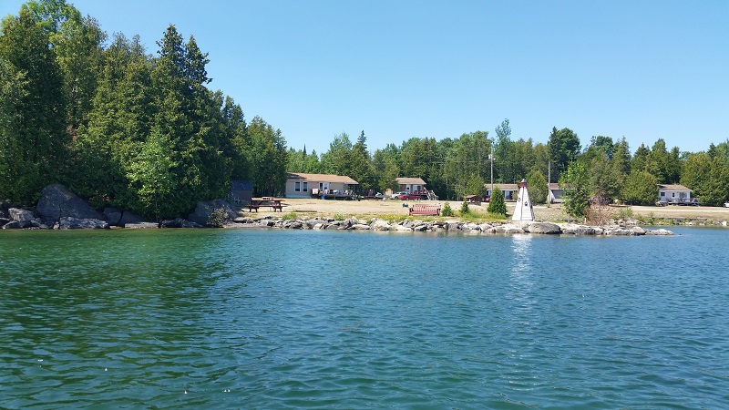 So fuhren wir die letzten Meilen nach Manitowning zum Black Rock Resort bei Manitowaning. Hier hatten wir für das komplette Wochenende eine Cabin am Ufer einer der zahlreichen Buchten des Lake Huron gebucht. Beim Check-in erfuhren wir, dass das Pow-Wow (das Indianerfestival, welches ein zentraler Planungsbestandteil unseres Urlaubs war) bereits am vergangenen Wochenende stattgefunden hat. Das sorgte erst einmal für enttäuschte Gesichter. Wir wurden aufgeklärt, dass der 1. August dieses Jahr an einem Montag war und dieser zum langen Wochenende gehörte. Wäre der 1. August am Dienstag gewesen, hätten wir das richtige Wochenende gewählt. Mist! Als wir dann noch gesehen haben, dass die gebuchte Hütte eher einfach und lieblos eingerichtet war, war die Stimmung erst mal im Keller. Zudem war eine der beiden Holzbänke hinter dem Haus verfault und zusammen gebrochen. Die Vermieterin sagte, dass sie uns eine neue hinstellen würde.