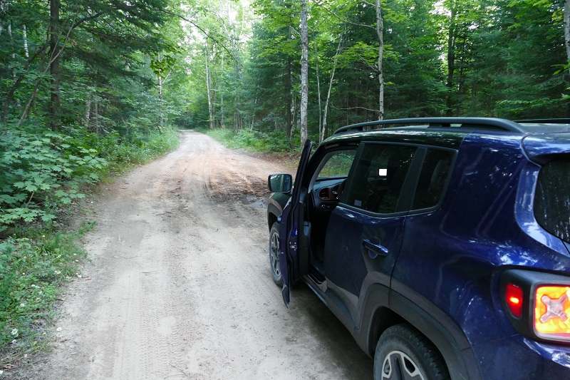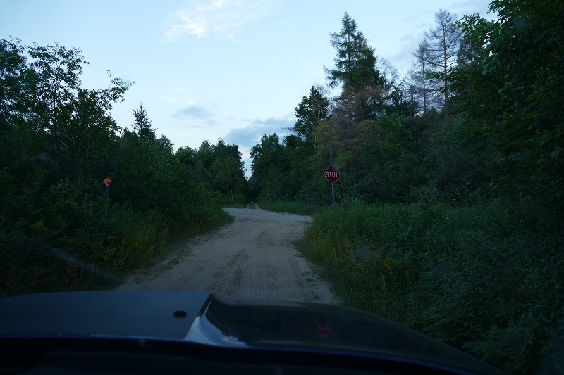 Es dämmerte bereits, als wir bei unserem Auto ankamen. Jetzt war es natürlich zu spät, um über Grand Marais zu fahren. Abgesehen davon hätten wir von dem Ort im Dunkeln eh nicht viel gesehen. Also ließen wir das Navi die schnellste Route nach Newberry über die 28 berechnen. Und damit begann unser letztes Abenteuer des heutigen Tages. Denn um zur 28 zu kommen, führte uns das Navi nicht zurück nach Munising, sondern überraschte uns mit einer einspurigen Straße (Camp Road), die quer durch den Wald führte und eher einer Off-Road-Strecke glich.