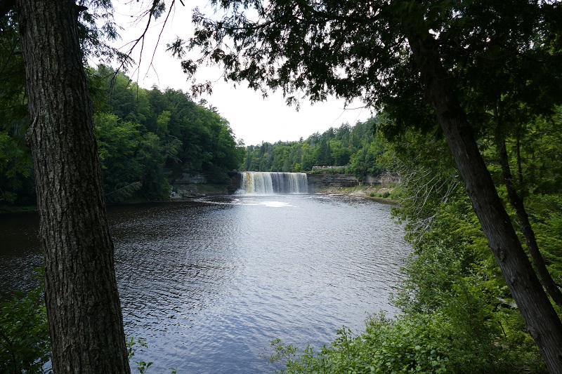 Wir ließen uns mal wieder ganz schön Zeit, so dass es ein paar Meilen weiter bei den Lower Falls nur noch zu einer Stippvisite reichte. Hier hätte man einen längeren Wanderweg gehen und dann sogar die Wasserfälle betreten bzw. darin baden können. Da wir aber nicht erneut erst spät abends am nächsten Hotel ankommen wollten, schauten wir uns die Lower Falls nur aus der Ferne an und fuhren anschließend über Paradise (welch Name für einen Ort) zu unserem nächsten Stopp, Sault Ste. Marie.