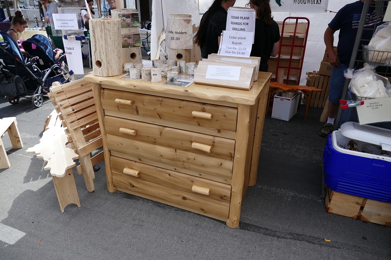 Mit blitzeblankem Auto fuhren wir ins Stadtzentrum von Sault Ste Marie. Dort waren ein paar Straßen gesperrt, auf denen ein Straßenfest mit Verkaufsständen und Bücherflohmarkt stattfand. Dominic hatten es vor allem die Quads und Racing Cars angetan, wir Erwachsenen waren begeistert von den massiven Echtholzmöbeln. Abgeschreckt waren wir alle, dass man an einem Stand einen gefüllten Waffenschrank mit Gewehren und Pistolen inkl. Munition gewinnen konnte.