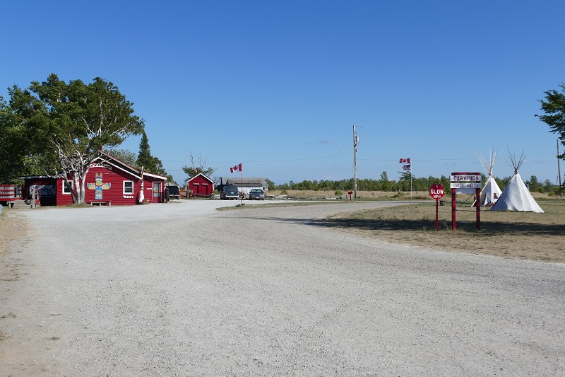 Je weiter wir nach Manitoulin Island kamen, desto weniger besiedelt erschien uns die Gegend. Gegen 17:30 Uhr kamen wir schließlich auf der Insel an. Auf dem Weg zu unserer Unterkunft kamen wir am Ten Mile Point vorbei, einer Trading Post, bei der man indianische Handwerkskunst kaufen kann. Wir stöberten eine Weile in dem Laden herum, aber vieles war einfach nur Nippes. Uns hat nicht wirklich etwas angesprochen.