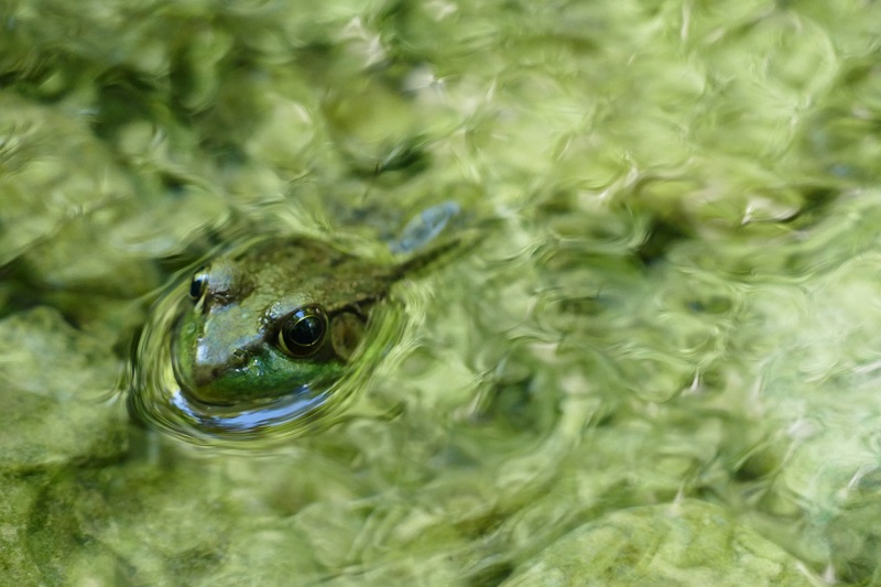 Anfangs waren uns zu viele laute Leute in dem kleinen Becken vor dem Wasserfall, so dass wir erst einmal ein paar Meter den Bach hinunter liefen und hier verweilten. Wir entdeckten haufenweise Frösche, die auf Steinen chillten, und wateten selbst durch den knöcheltiefen Bach. Hier war es ruhig, schattig und schön.