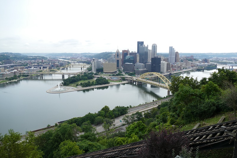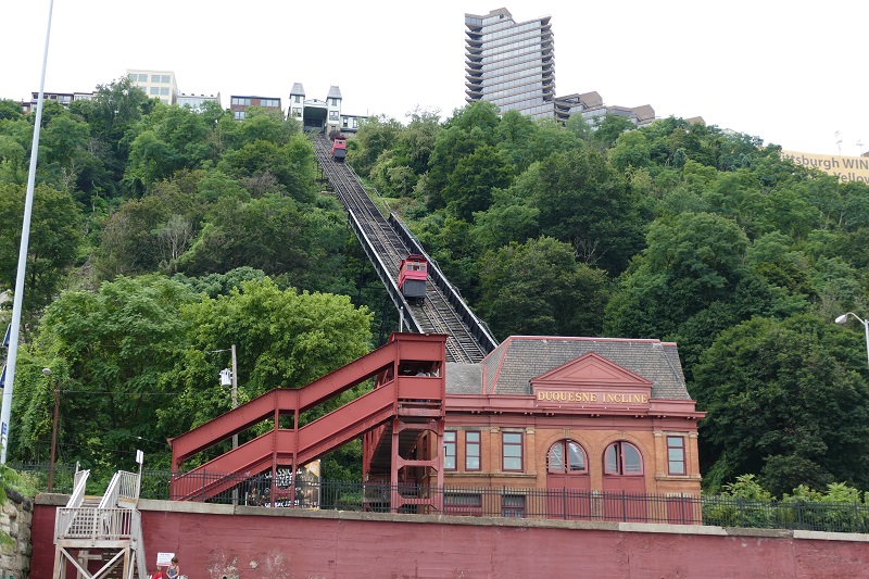 Auf dem Mt. Washington befindet sich die obere Station der Duquesne Incline, einer Standseilbahn, die seit 1877 ihre Fahrgäste auf 240 m Länge den Berg rauf und runter befördert. Von hier oben hat man einen wunderbaren Blick auf die Stadt Pittsburgh mit ihren sagenhaften 446 Brücken.