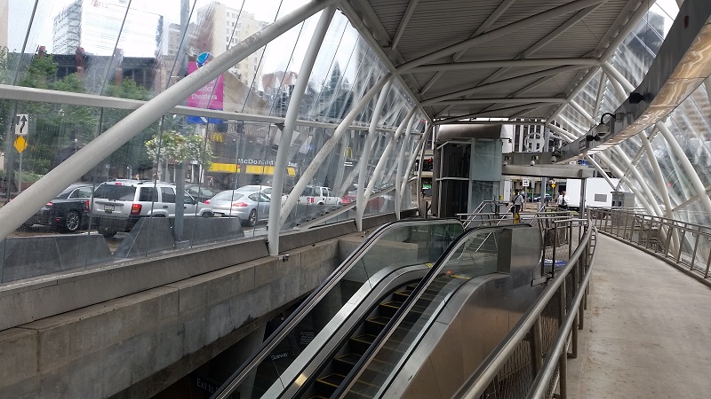 Um 12:00 Uhr begannen wir damit, Downtown zu Fuß zu erkunden. Unser Ziel war der Springbrunnen im Point State Park. Nachdem wir wenige Meter vom Parkhaus gegangen waren, erwischte uns der erste Regenschauer, der uns in einen Subway trieb, wo Dominic eine Kleinigkeit aß.