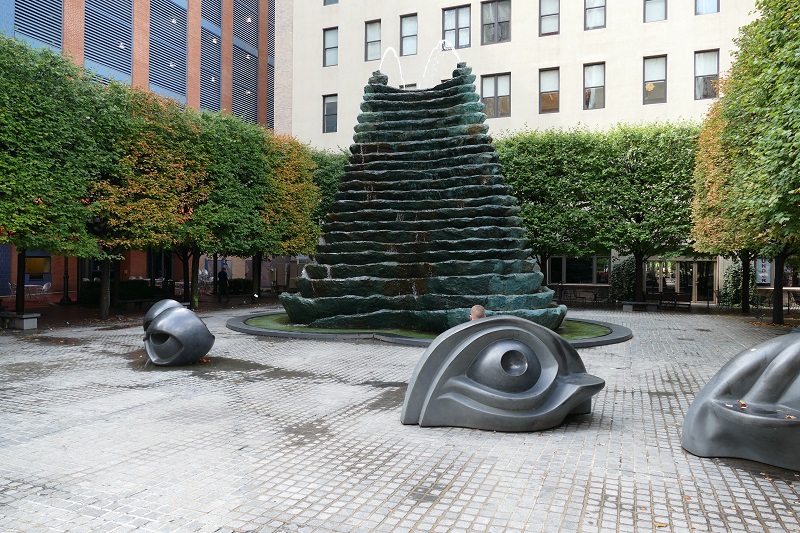 Irgendwann meinte Chris, dass wir jetzt einfach zum Springbrunnen laufen sollten. Also setzten wir uns bei Nieselregen in Bewegung. Und als wäre das ein Zeichen gewesen, lichteten sich die Wolken und als wir am Springbrunnen ankamen, hatte es aufgehört zu regnen. Trockenen Fußes umrundeten wir den Springbrunnen, der tatsächlich viel größer ist, als er vom Mt. Washington aus den Eindruck macht.