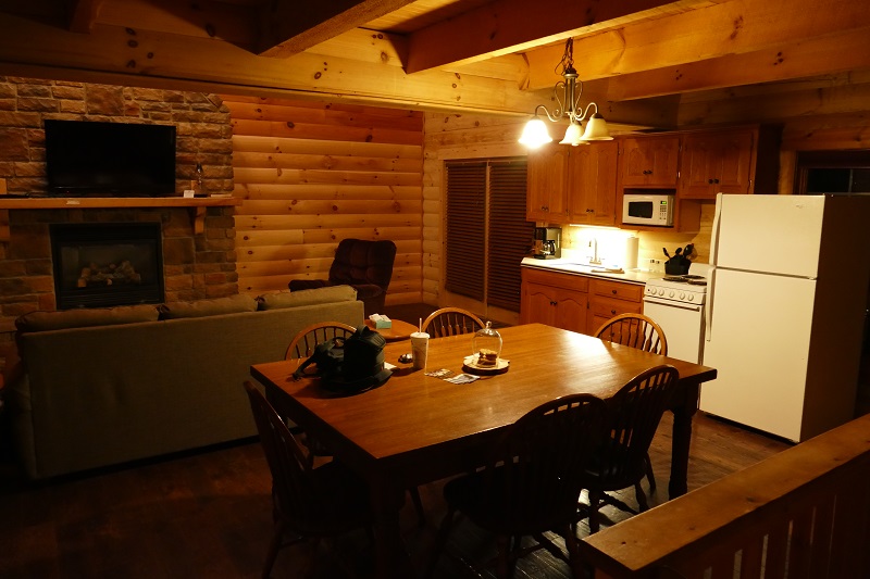 Da wir schon relativ spät dran waren, probierten wir zum Abendessen mal die Fast Food Kette Wendy's aus und waren recht zufrieden. Erst im Dunkeln, gegen 21:30 Uhr, kamen wir in Berlin, Ohio an und bewunderten unser gebuchtes Cottage: Ein großes Haus aus echten Baumstämmen, mit einer schönen Galerie, großem Kamin und geschmackvoller Einrichtung. Nach der Hausbesichtigung und zwei Runden Billard fielen wir müde in die Betten.