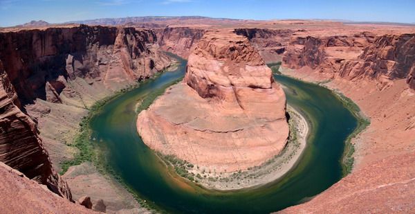 Anschließend ging´s zum Horseshoe Bend, eine unheimlich schöne Schleife des Colorados, ganz in der Nähe von Page. Nachdem wir dort alle Perspektiven untersucht hatten, setzen wir uns einfach an den Rand, genossen den Anblick und amüsierten uns über die Vögel, die oberhalb des Rims rumflogen. Die waren so schnell unterwegs, dass es richtig in der Luft gepfiffen hat.