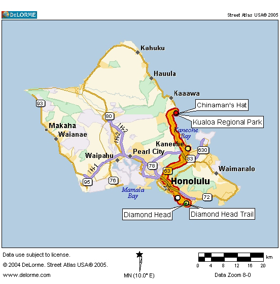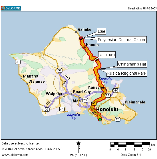 Also auf ging's. Allein bis man aus Honolulu hinaus kommt, dauert es seine Zeit und dummerweise hatten sie von gestern auf heute vor Kane'ohe eine Großbaustelle eröffnet, was zügiges Voranfahren verhinderte.