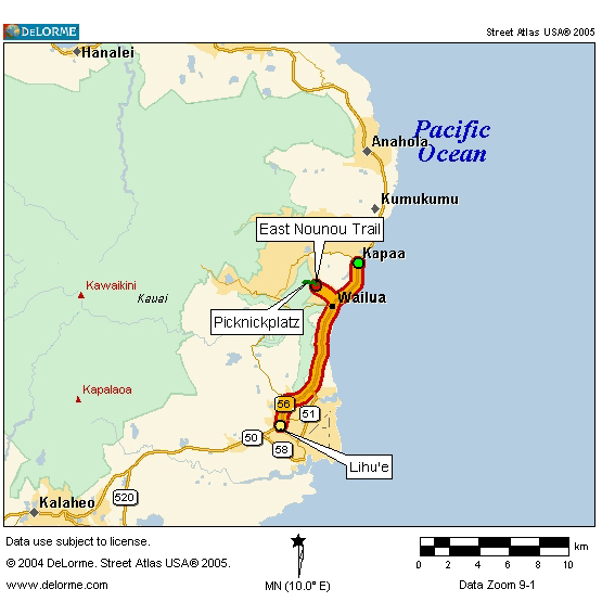 Wie es im neu gekauften Reiseführer (Explore Kaua'i) auch stand, hatten wir immer wieder einen herrlichen Blick auf Kapa'a und Wailua. Die Sicht nach Lihu'e war uns allerdings versperrt, machte aber nichts, denn das Gesicht vom Sleeping Giant hatten wir sehr oft vor den Augen.