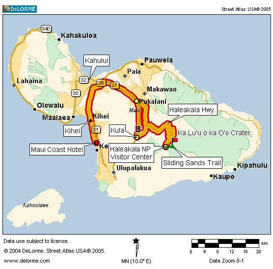 Als es bereits finster wurde, fuhren wir nach Kihei zurück. Obwohl es zu diesem Zeitpunkt noch nicht allzu spät war, dauerte es doch glatt wieder bis nach Mitternacht, ehe ich ins Bett kam. Die üblichen Aktivitäten, nämlich Fotos überspielen, Akkus laden und Reisebericht schreiben, dauerten wieder eine ganz nette Zeit lang.