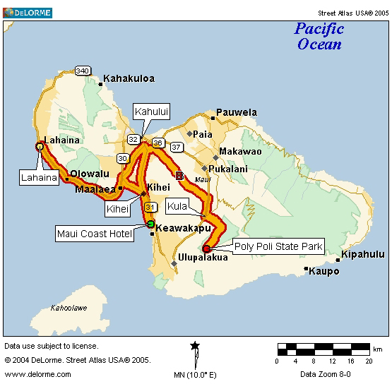 Tja, was tun? Ich war müde hoch 10 und Grandma's Coffee in Keokea (das wir auch schon kennen) bot sich an. Nach 2 doppelten Espresso war ich wieder ein Mensch und in der Zwischenzeit hatte Michi den Plan entwickelt, wir fahren nach Lahaina. Nach Lahaina!!! Jeder, der weiß, wo Keokea liegt und weiß, wo Lahaina liegt, weiß, was das bedeutet, nämlich den Umweg über Kahului etc.