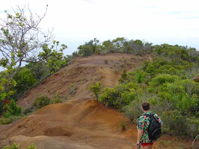 Oh Gott!!! Musste das wirklich sein?? Wieso sollte der Awa'awa'puhi Trail in einem besseren Zustand sein? Er liegt ja noch höher als der Nualolo Trail, daher gibt es mehr Regen - mir fehlte wirklich die Fantasie für Michi's Entscheidung.