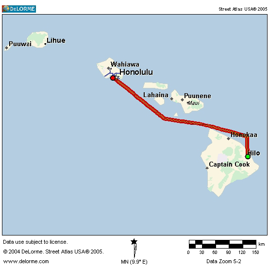 Wir gönnten uns je ein Eis im "Restaurant" am Airport. Boarding time war um 4:55 pm, wir nahmen unsere heiß geliebten Plätze im Flieger ein. Ich Fenster, Michi daneben, vorher saß schon eine ca. 60-jährige Frau am Gangplatz - eine äußerst seltsame Figur!! Achja, wir saßen übrigens linkerhand, von der Flugrichtung her gesehen. Einfach optimal! Wir hatten eine super Sicht auf den Mauna Kea, Mauna Loa, Hualalei!!! (Abflugzeit 5:30 pm).