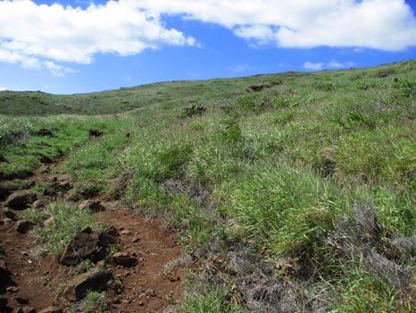 Es gibt auf den Inseln Trails, deren Trailhead als solcher nicht zu erkennen ist, wo man eine Nase wie ein Spürhund braucht – siehe den Kalua o Lapa Lava Vent Trail vom 22. 12. 2005 (ja, ich weiß, die Karte bin ich noch schuldig :wink: Seit heute Nacht funktioniert mein Stand-PC mit neuer Festplatte wieder, aber ich habe den Street Atlas noch nicht installiert, geschweigedenn die Karte gezeichnet, hole ich nach – versprochen :!: ) bzw. gucke dir noch mal das Foto an mit der krümmeligen Lava, woraus wir schlossen, das muss der Trail sein – und er war es.