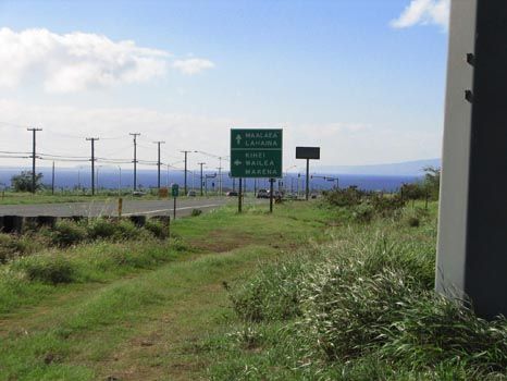 Zu diesem Zweck fahren wir in Richtung Ma'alaea und ich muss, um zum Trailhead zu gelangen, etwas ziemlich irrwitziges Unternehmen, nämlich vom Highway auf die andere Fahrspur (also entgegen unserer jetzigen Fahrtrichtung) wechseln. Glücklicherweise gibt es sogar eine Linksabbiege- bzw. U-Turn-Spur und die Sache funktioniert leichter als gedacht. Kaum auf der anderen Fahrspur fahren wir über eine ziemlich unscheinbare kleine weiße Brücke und sofort ( :!:) unmittelbar danach muss ich mich auf den Pannenstreifen begeben. Nein, wir haben keine Panne, sondern einige Meter hinter uns kann ich den Jeep abstellen. Dazu muss ich allerdings den Rückwärtsgang benutzen, denn zum Umdrehen ist hier kein Platz.