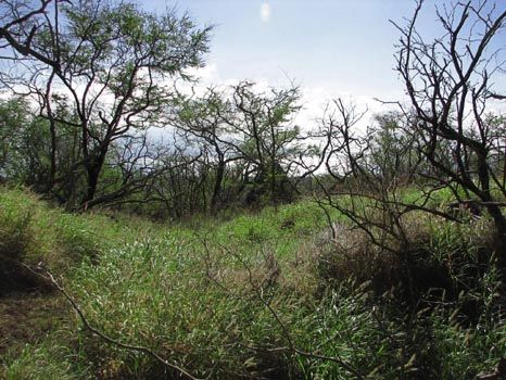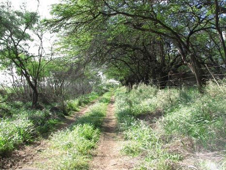 Ein kurzes Stück gehen wir landeinwärts, dann findet sich das nächste Hinweisschild (vonwegen, der Trail ist nicht ausgeschildert :!:): „Lahaina Pali Trailhaid 0,6 mi“, also biegen wir scharf links ab und folgen einer 4WD-Piste.