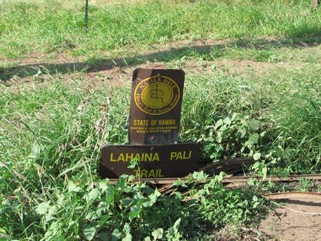 Wieder einmal mehr kann ich mich nur über die diversen Reiseführer und sonstige Infos wundern, denn überall heißt es, es gibt keinerlei Beschilderung, die auf den Lahaina-Pali Trail hinweist. Und was bitte schön steht dann auf diesem Schild hier :?: „Lahaina Pali Trail“. Schön groß, gelbe Schrift auf braunem Hintergrund…