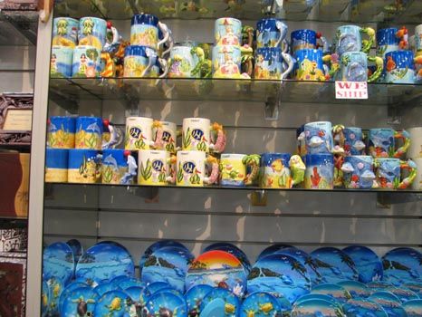 Im Ka'ahumanu Shopping Center genehmigen wir uns als Erstes beim Starbucks je einen Espresso, dann sind wir wieder Menschen :wink: Anschließend schlendern wir ein wenig herum, gucken in dieses und jenes Geschäft und landen plötzlich vor der Fressmeile. Genau in diesem Augenblick knurren unser Mägen und „Alexander’s“ zieht uns magnetisch an. Michi bestellt sich Ono mit Pommes, ich mein geliebtes Terijaki Chicken, ebenfalls mit Pommes. Dafür zahlen wir insgesamt $16, aber das Essen ist sein Geld wert – es schmeckt ausgezeichnet und mengenmäßig ist es zuviel. Anschließend bummeln wir noch ein wenig, kaufen aber nichts.