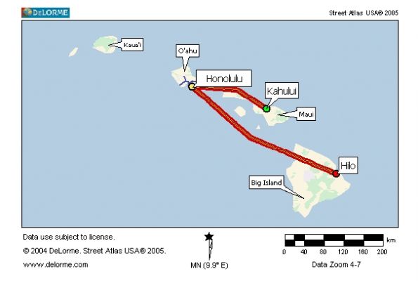 Endlich, nach einem knapp einstündigen Flug, landen wir um 11 Uhr in Hilo. Nach einer längeren Wartezeit können wir vermelden, dass unsere vier Koffer mit uns angekommen sind. Absolut nichts Normales, wenn ich die Leute sehe, die sich in der Reihe anstellen, um ihre vermissten Gepäckstücke bekannt zu geben