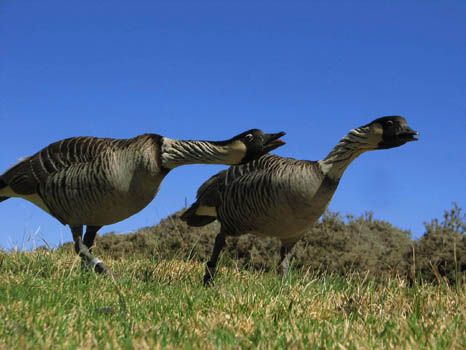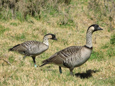 Wir steigen aus dem Auto, greifen zu Digicam und Camcorder und widmen uns längere Zeit diesen seltenen Tieren. Eine Nene trägt die Nummer 126, die andere die Nummer 107, also bereits registrierte Tiere.