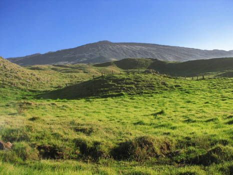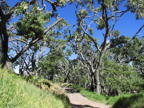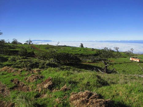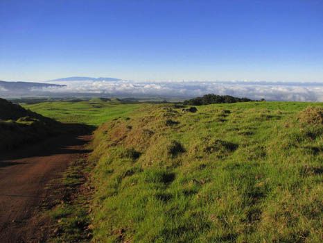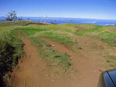 Noch ein Hinweis zur Mana Road: Sie führt durch das Privatgelände der Parker Ranch, aber die Mana Road selbst steht der Öffentlichkeit zur Verfügung. Abkommen vom Weg ist allerdings nicht erlaubt, meist durch die umgebenden Zäune auch nicht möglich.