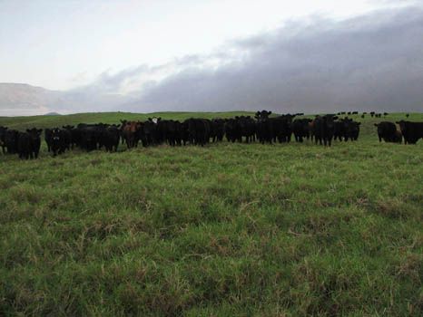 Eine der großen Rinderherden hat es mir angetan, ich steige aus und nähere mich. Mit einem Satz, gerade so, als hätte ich Giftspritzen in den Händen, flüchten die Kühe ein paar Meter landeinwärts. Sie haben nicht bemerkt, dass uns ein Stacheldrahtzaun trennt :lol: Wie versteinert bleiben sie stehen und glotzen weiter. Na gut, dann eben nicht. Ich gehe in Richtung Auto und höre hinter mir ein allgemeines „muhhhhhh“. Ach nein, wie freundlich, die gesamte Kuhherde nähert sich dem Zaun – und glotzt weiter. Gut, nächster Anlauf :wink: Ich nähere mich ihnen wiederum, schwups, sie laufen davon, anscheinend verwechseln sie mich mit dem Farmer :lol: Geduldig wie ich bin, bleibe ich stehen und harre der Dinge – äh, Kühe – die da kommen. Nur wenige Meter von mir entfernt stellen sie sich in Reih’ und Glied auf, gerade so, als hätten sie jetzt einen Fototermin :D Diese Gelegenheit nehme ich wahr und knipse, der Anblick ist auch wirklich zu köstlich :!: :lol: