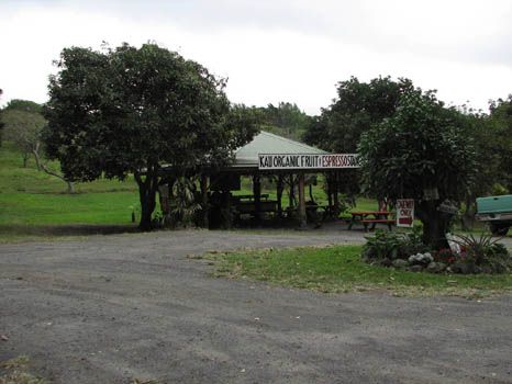 Wir fahren noch ein Stück weiter, denn wir wollen beim uns schon bekannten „Ka’u Organic Fruit and Espresso Stand“ Kaffee trinken.