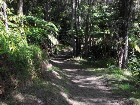 Kurz nach Trailbeginn begegnen wir einem Vorarlberger Ehepaar, das derzeit zum zweiten Mal auf den Hawaii-Inseln Urlaub macht. Vor sieben Jahren war ihr erster Urlaub. Offenbar sind sie auch Wanderer, denn sie fragen uns nach schönen, einsamen Wanderwegen auf Big Island. Ich nenne ihnen ein paar, gebe auch die Anfahrtsbeschreibung bekannt. Sie bedanken sich, dann trennen sich unsere Wege.