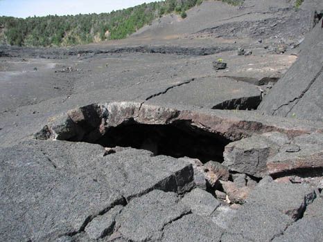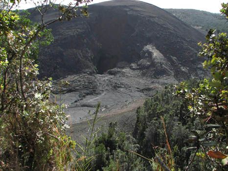 Beim Kipuka Puaulu handelt es sich um einen kleinen „Berg“, an dem die Lava nur unten herum floss, es gibt aber auch Kipukas, die ein Haus sein können, also wo ein einzelnes Haus – aus welchen Gründen auch immer, hier wird viel gemunkelt – von der Lava verschont blieb.
