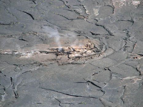 Aus den diversen Lavaspalten kommt mehr oder weniger Wasserdampf. Achja, heute ist doch Sonntag :!: Die Feuergöttin Pele kocht groß auf :!: :wink: