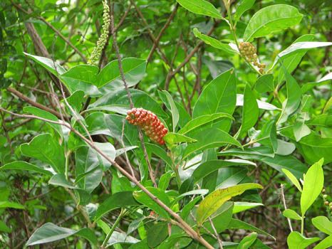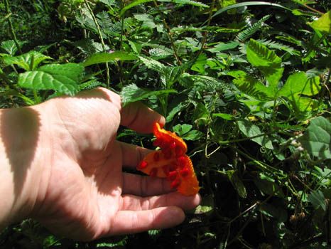 Links und rechts von uns hüfthohes Gras, ab und zu sehen wir Blüten und Früchte, die wir nicht zuordnen können.