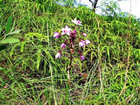 Orchideen blühen am Wegesrand, zwar nicht sehr häufig, aber immerhin. Die „blue trees“, wie hier immer wieder die Eukalyptusbäume genannt werden, tragen ihren Namen zu Recht.