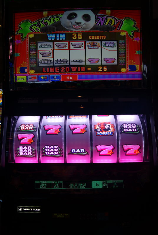 Im "D" lassen wir uns Playerskarten machen und nehmen 3$ Freeplay mit. Die sind natürlich schnell weg und mit meinem nächsten 5er krieg ich am Panda-Automaten wieder einen Bonus und bin dann wieder bei 20$.
