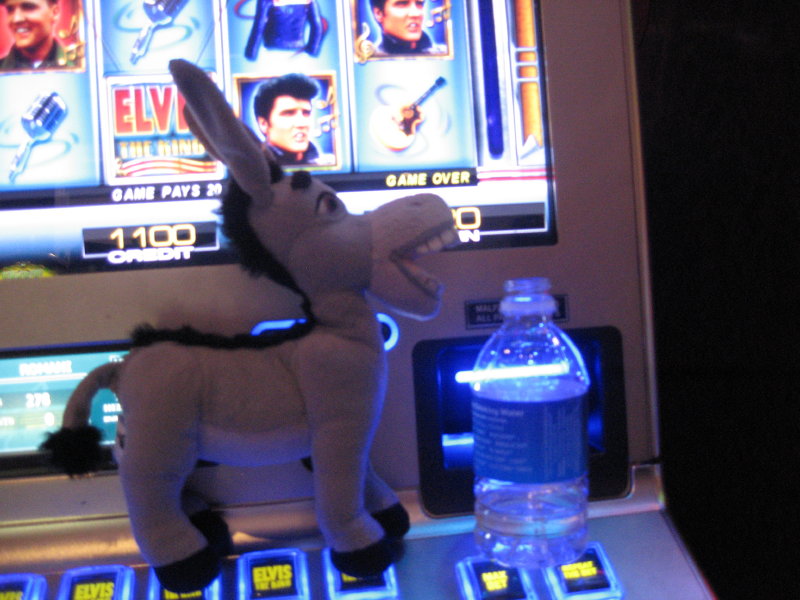 Noch eine Runde zocken und vielleicht eine Bonusrunde von Elvis kriegen. Die Cocktail-Waitress ist schnell zur Stelle und jetzt müsst Ihr ganz stark sein.. Ich schwächele und nehme mir nur ein Wasser! Glaubt es - oder nicht…
