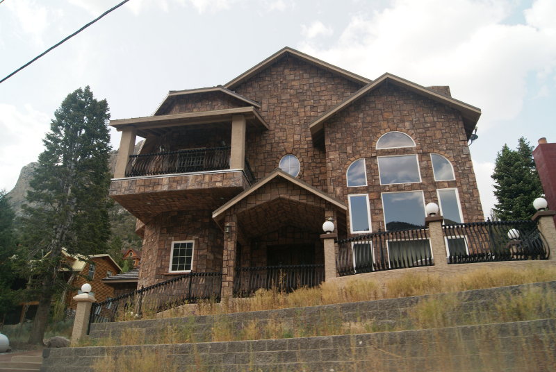 Überall stehen sehr schöne Holzhäuser und wir fragen uns, ob die wohl nur in der Wintersaison benutzt werden oder womöglich aufgrund der Wirtschaftskrise leer stehen..