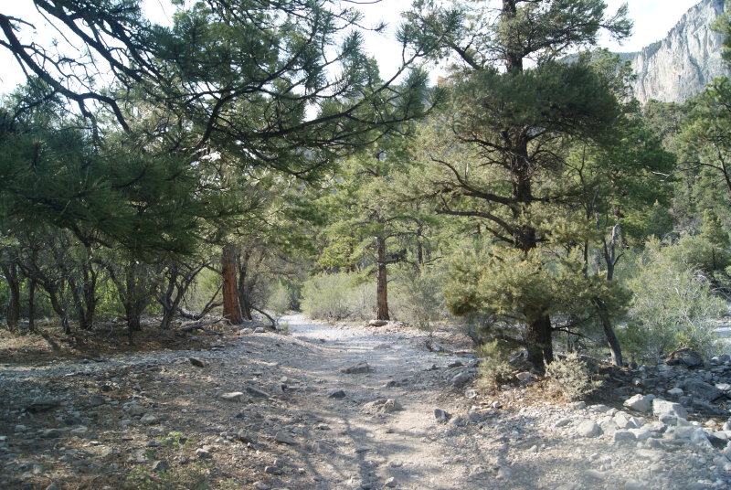 Ich merke, wie der Hase mit zunehmender Strecke immer mürrischer wird.. Die Frage "bist Du sicher, daß der Trail 1,8 Meilen lang ist?" sagt mir alles. Allerdings kommt mir der Weg durch den jetzt gar nicht mehr so kühlen Wald auch ziemlich lang vor. Dazu kommt noch, daß es halt einfach Wald ist.. Das Wow-Erlebnis fehlt irgendwie.
