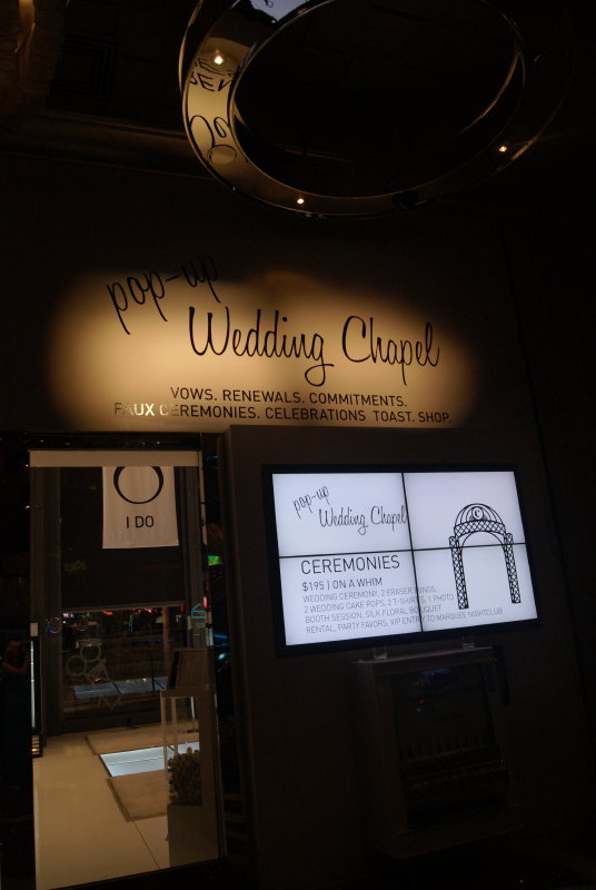 Das Cosmo hat jetzt eine Pop-up-Chapel.. Dort kann man quasi im Vorbeigehen heiraten. Im Automaten steckt von der Sektflasche bis zur Torte alles drin, was man braucht.. Für die Bilder steht ein Passbild-Automat bereit und Gummis kann man natürlich auch ziehen :) That's Vegas Baby.