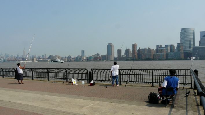 Zuerst noch bei relativ gutem Wetter ein paar Fotos von Jersey aus geschossen, mir haben die Angler gefallen, die Ruhe weg angeln die da in dieser Brühe namens Hudson River, immerhin haben sie eine tolle Aussicht