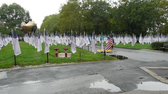 Die genau 3000 Flaggen nennen sich Flags of Honor und in roter und blauer Schrift sind die Namen aller Opfer des 9/11 geschrieben.