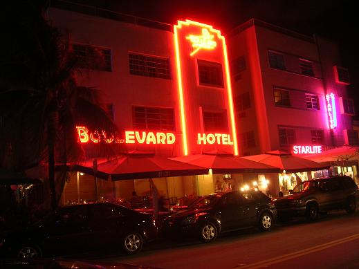 Anschließend ging es weiter nach Miami hinein und weiter über den MacArthur Causeway hinüber nach Miami Beach, einer vorgelagerten Insel vor der eigentlichen Stadt; alles mittlerweile im Stop’n’Go-Tempo. Ein kurzes Studium im Couponbook empfahl uns das recht zentral gelegene „Best Western“ als Unterkunftsmöglichkeit. Nachdem wir dort eingecheckt hatten und ich den Wagen in einer nahe gelegenen Parkgarage abgestellt hatte, ging es auf Erkundungstour – und dabei natürlich zuerst an den berühmten Ocean Drive mit den Art-Deco-Häusern