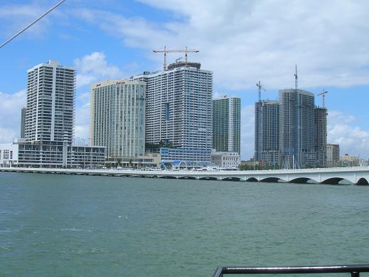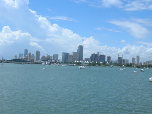 Zuerst bot sich uns aber vom Hafenbecken aus noch eine schöne Gesamtansicht der Skyline von Miami: