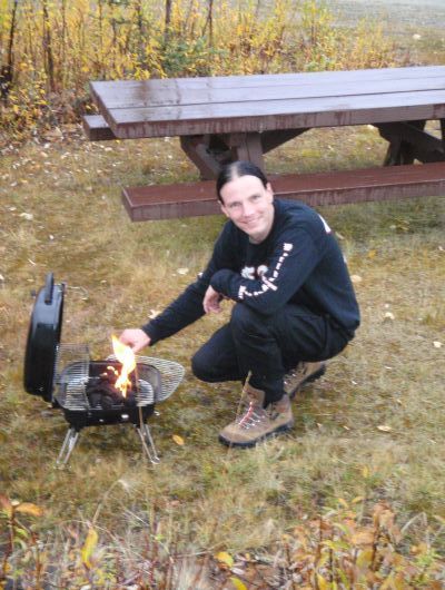 Somit sitze ich zum Reisebericht schreiben im Freien, während Stephan nebenher den Grill zusammenbaut und anschließend ein paar Würstchen zum Abendessen grillt.