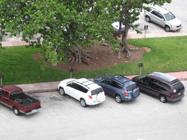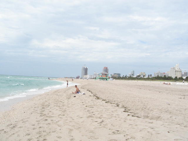 Wir beschließen noch bis Miami Beach zu fahren und uns dort ein Hotel zu suchen. Wir kurven die Collins- und Washington Ave. Rauf und runter und fahren auch den Ocean Drive entlang. Schade, dass es immer noch regnet. Wenigstens finden wir auf Anhieb das Studio von „Miami Ink“. Aber leider ist keiner der Inhaber da. Und wer will schon einen No-Name-Tätowierer sehen? Als auch das zweite Hotelzimmer nicht unter 200 $ zu haben ist, vergeht uns irgendwie das Lachen. Es ist schon fast 20 Uhr und um diese Zeit, weiß ich schon gern, wo wir die Nacht verbringen. Ich erinnere mich, am Strand irgendwo ein Day’s Inn gesehen zu haben. Die sind doch nicht so teuer..?! Ein fataler Fehler. Der Preis ist mit 70 $ zwar o.k, aber das Zimmer ist total abgewohnt und es stinkt. Ich reiße erstmal die Balkontür auf und entdecke die Quelle des Geruchs. Durch die Tür kommt Regenwasser rein und fließt hinter den Fernsehschrank. Dort macht sich munter Schimmel breit.